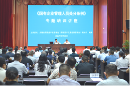 本次講座特邀省國資委領導作專題授課。培訓中,授課老師從《國有企業管理人員處分條例》的出臺背景、過程、意義和重點概念以及主要內容等方面進行了深入淺出的講解,同時還結合自身工作經驗,對企業國有資產評估管理、交易監管等有關政策進行了詳細解讀,為進一步強化國有企業管理人員紀法意識和紀律觀念,規范國資國企生產經營行為提供了重要指導。